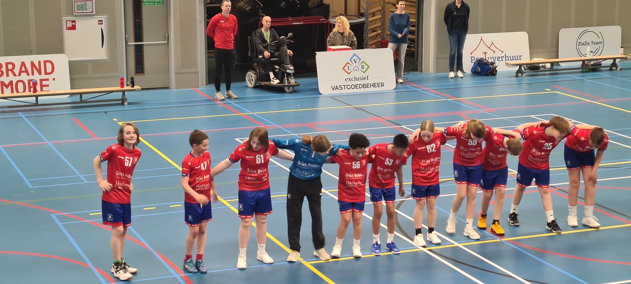 Waar het winnen of verliezen eigenlijk nog niet belangrijk is, bewijzen onze jongste leden waar we ons eigenlijk allemaal wat meer aan zouden moeten houden: plezier staat voorop en wat een plezier maken ze samen. Van op zaterdagavond trommelen en zingen bij de heren naar op zondagochtend zovaak mogelijk proberen te scoren, doen ze mooi met elkaar en hopelijk mogen we hun over een aantal jaren verwelkomen bij de tieners!